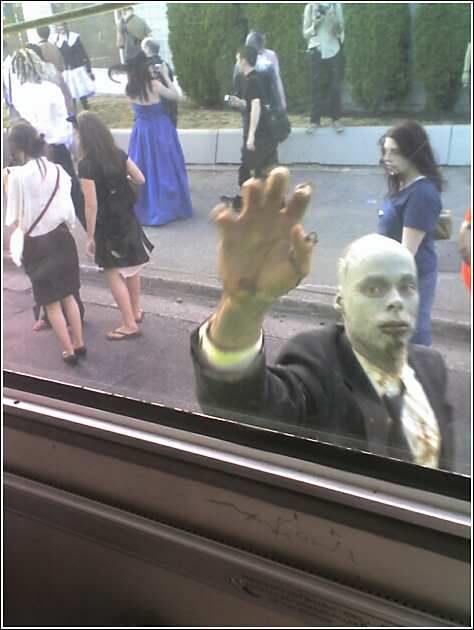 This weekend, Vancouver played host to the first ever zombie walk. Apparently 300 undead, costumed souls arrived at the Vancouver Art Gallery to shamble over to a cemetary. Kirsten has a complete rotting-limb-by-rotting-limb account on her site: