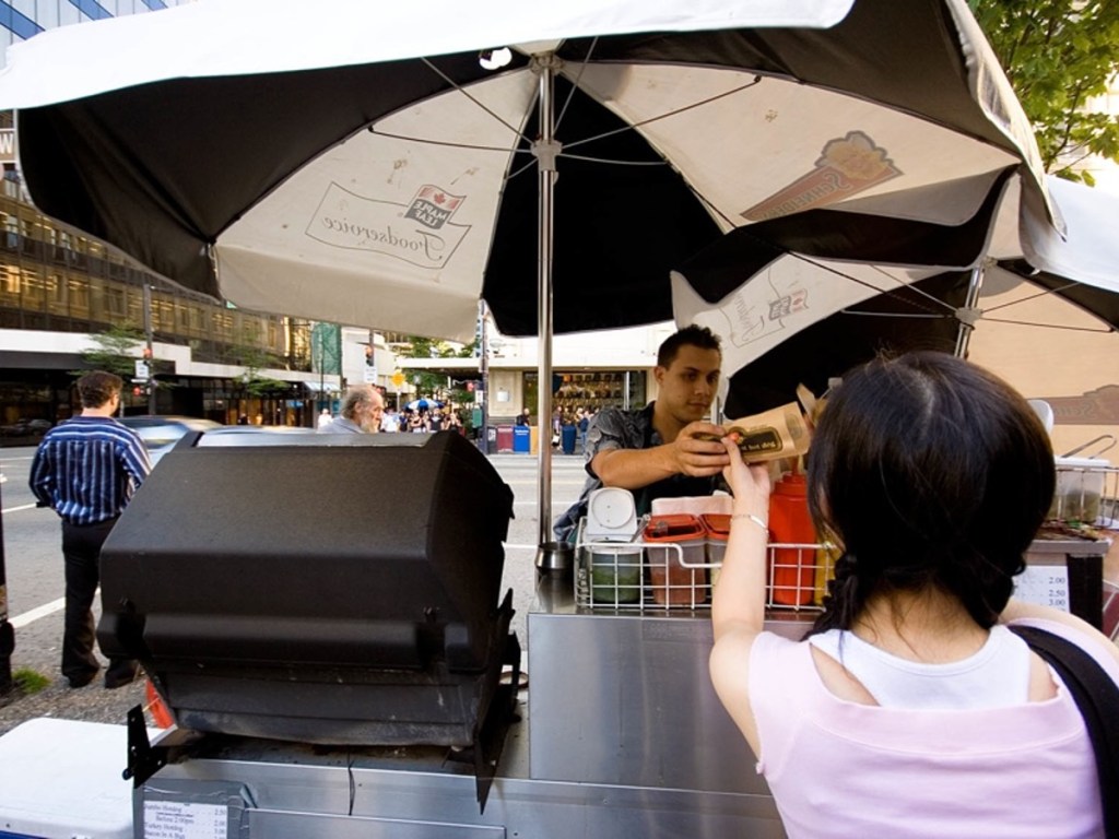 When I lived in Vancouver, I’d visit this hot dog stand at the corner of Granville and Georgia. If you find yourself in Vancouver, I highly recommend it. The turkey smokie is out of this world. Be sure to get the fried onions.